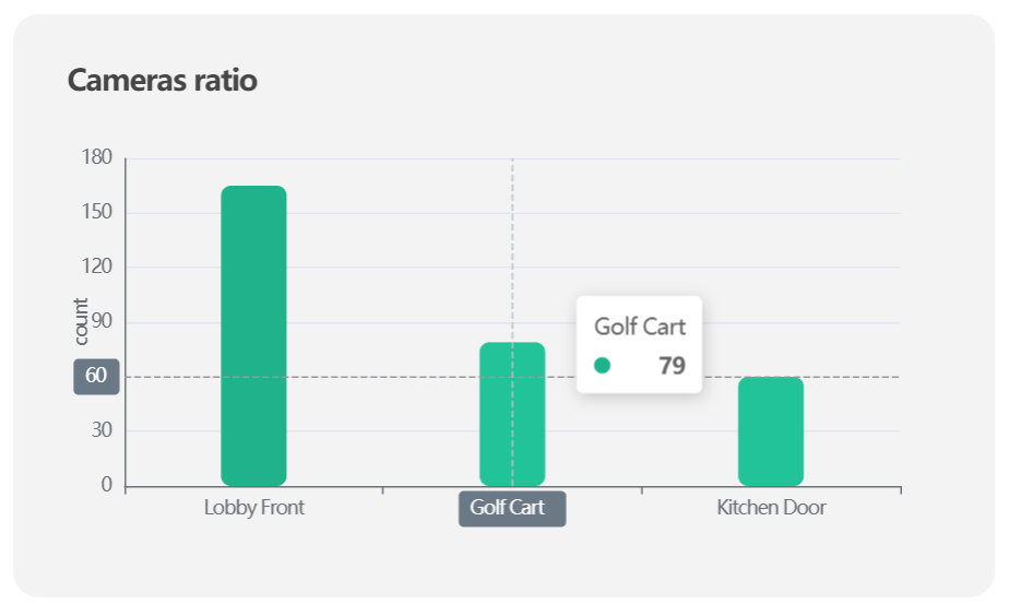- Camera Ratios: The dashboard shows which cameras are detecting the most foot traffic at a glance. This information can help you optimize staffing, cleaning, and security, evaluate camera placement, track visitor trends, and assess the effectiveness of promotions or events.