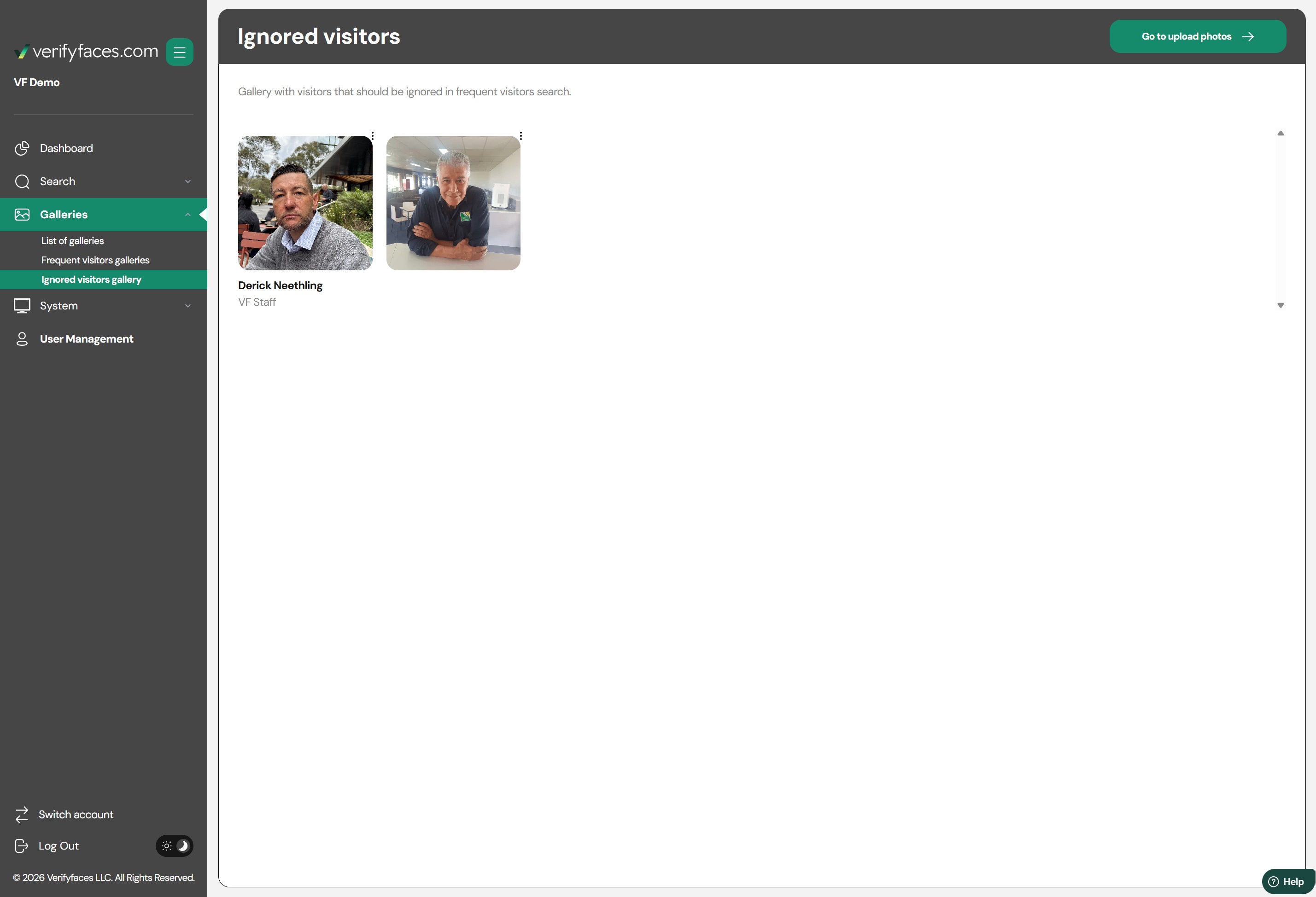 Verifyfaces allows you to create different types of galleries, each serving a specific purpose. In addition to manually created galleries, the system includes Frequent Visitor and Ignored Visitor galleries, designed to streamline monitoring and enhance operational efficiency.