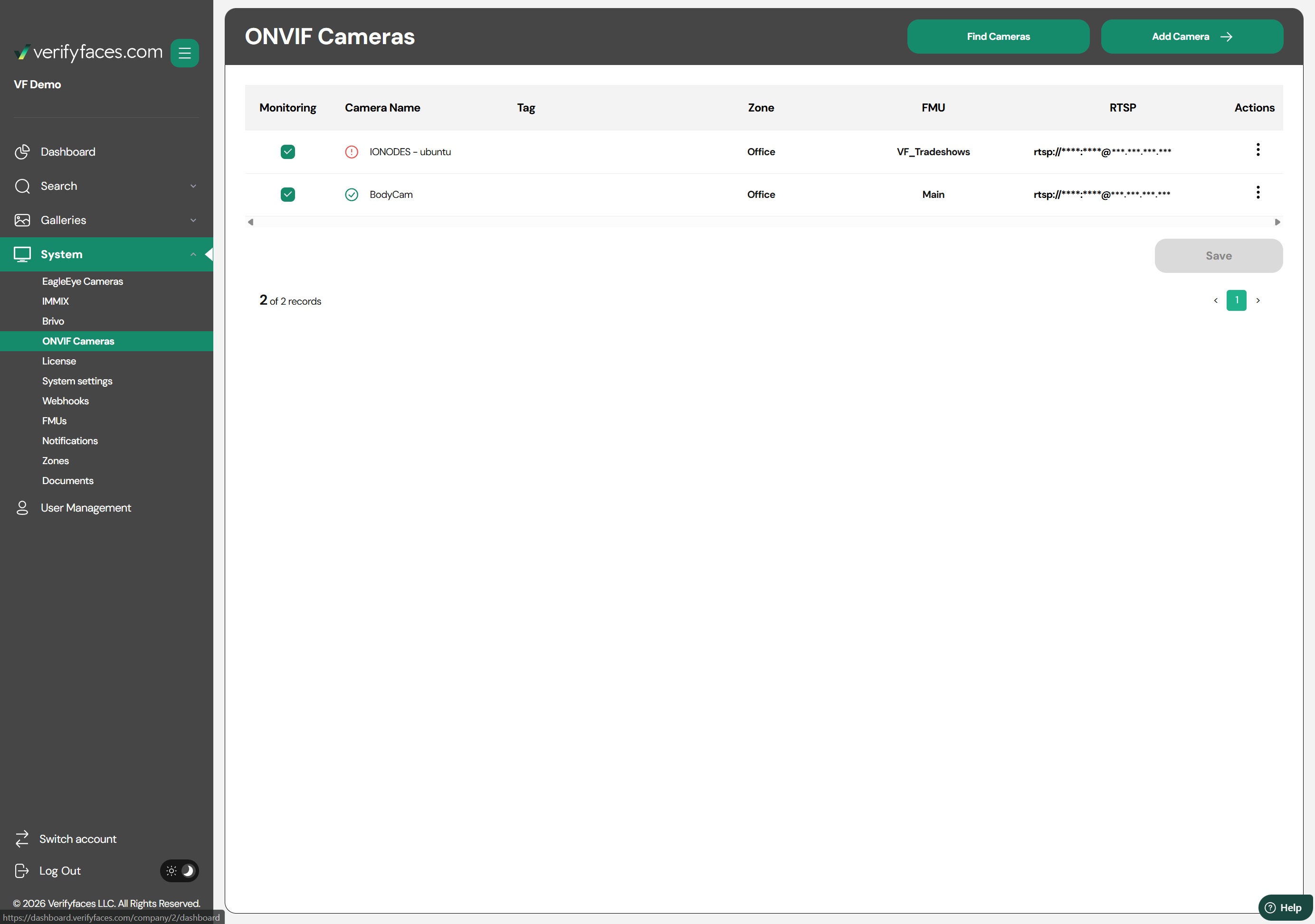 Cameras can be connected to Verifyfaces using industry-standard protocols, making deployment flexible and scalable. Whether cameras are added automatically through ONVIF or manually via an RTSP stream, Verifyfaces provides multiple ways to bring video into the platform without disrupting current systems.